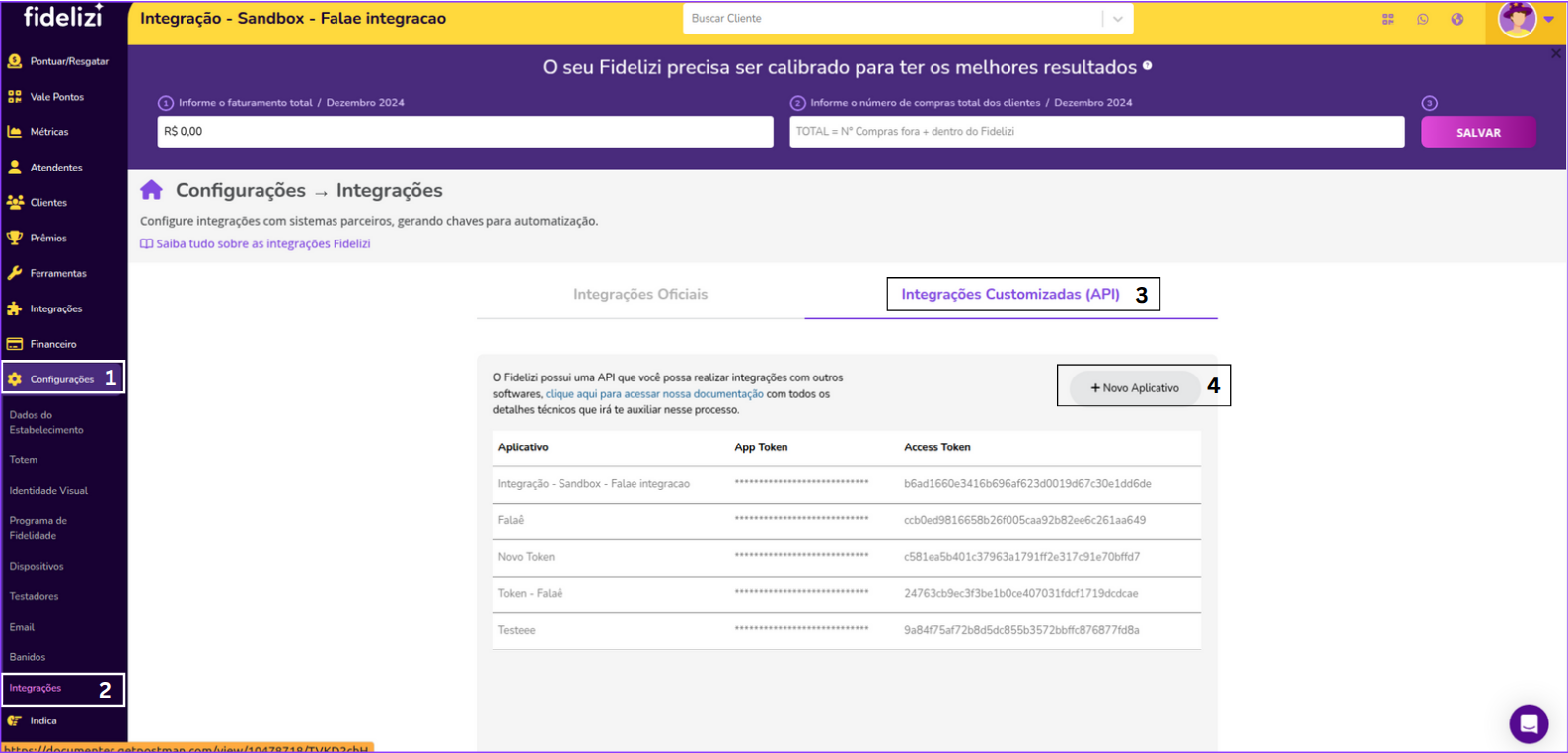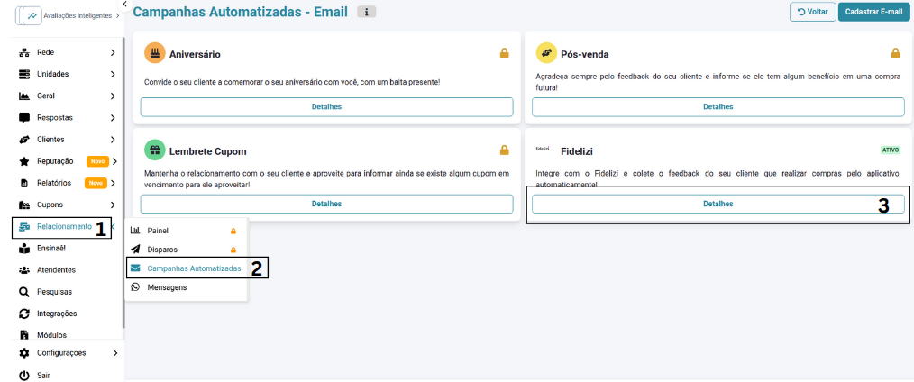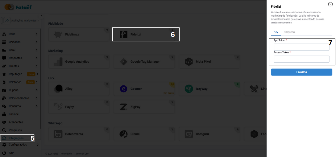 - Procurar pela integração do Fidelizi ( Item 6 na imagem )